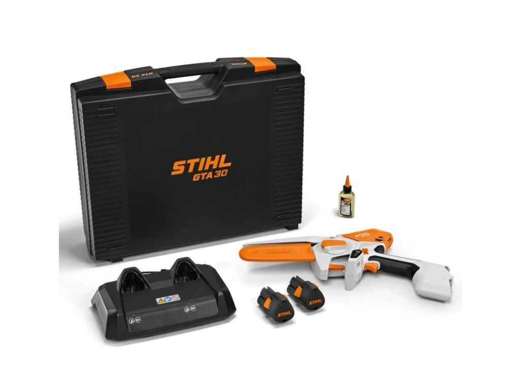 Tato výhodná sada obsahuje nejen samotnou minipilu GTA 30, ale také dva lithium-iontové akumulátory STIHL AS 2, rychlonabíječku AL 5-2 pro současné nabíjení obou akumulátorů, pevný kufr na nářadí a víceúčelový olej STIHL Multioil Bio. Díky tomu můžete začít pracovat okamžitě.
