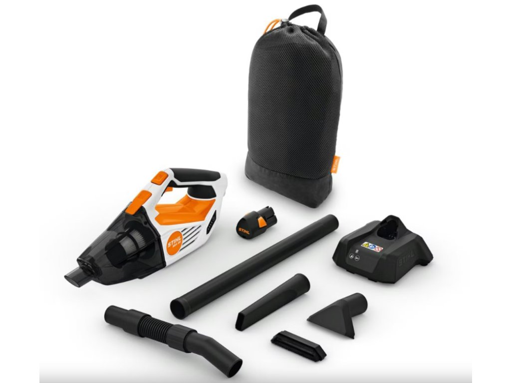 Ruční vysavač STIHL SEA 20 v sadě s akumulátorem AS 2 a standardní nabíječkou AL 1 se dodává s bohatým a praktickým příslušenstvím, a to se štěrbinovou hubicí, hubicí na hrubé nečistoty, sací hadicí, prodlužovací trubicí a papírovým filtrem. Vysavač můžete uložit do dodávaného úložného vaku se závěsným poutkem, abyste jej mohli bez problému uschovat.