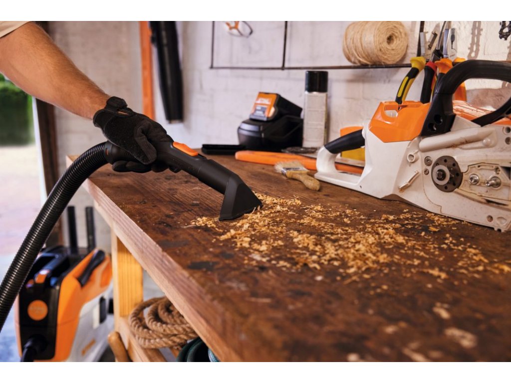 Univerzální hubice a štěrbinová hubice jsou u vysavače STIHL SEA 60 L snadno přístupné, takže můžete snadno a rychle přepínat mezi různými způsoby použití. S 2,2 m dlouhou, otočnou sací hadicí a dvoudílnou sací trubicí dosáhnete i do těžko přístupných rohů.