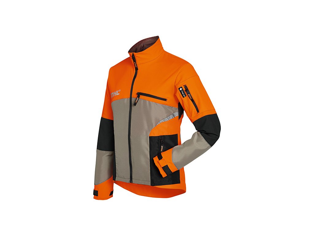 Velmi lehká, prodyšná blůza pro letní období. Barva oranžová, černá, khaki, větrací otvory, elastické manžety se zapínáním na suchý zip, zpevnění na loktech, reflexní detaily, čtyři kapsy na zip, uvnitř kapsa na smartphone, velké logo STIHL na zadní straně