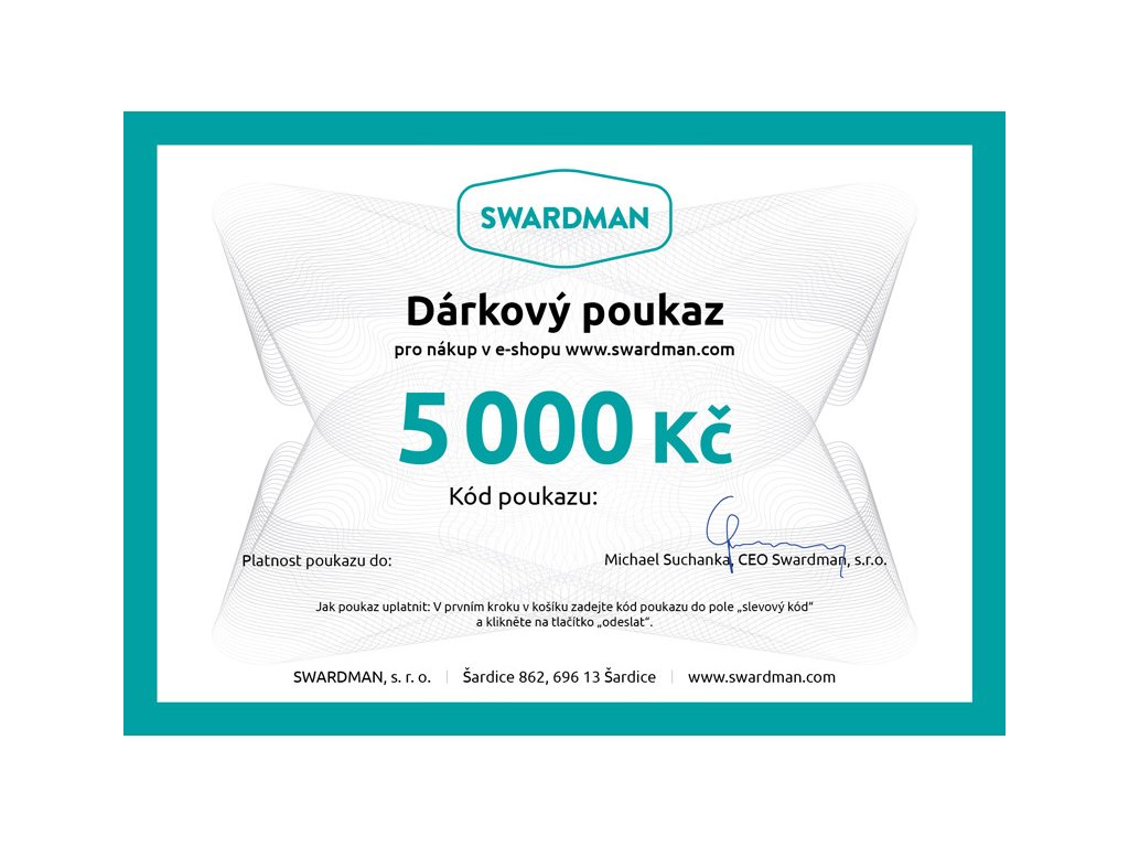 Dárkový poukaz v hodnotě 5 000 Kč na nákup zboží z nabídky internetového obchodu www.swardman.com