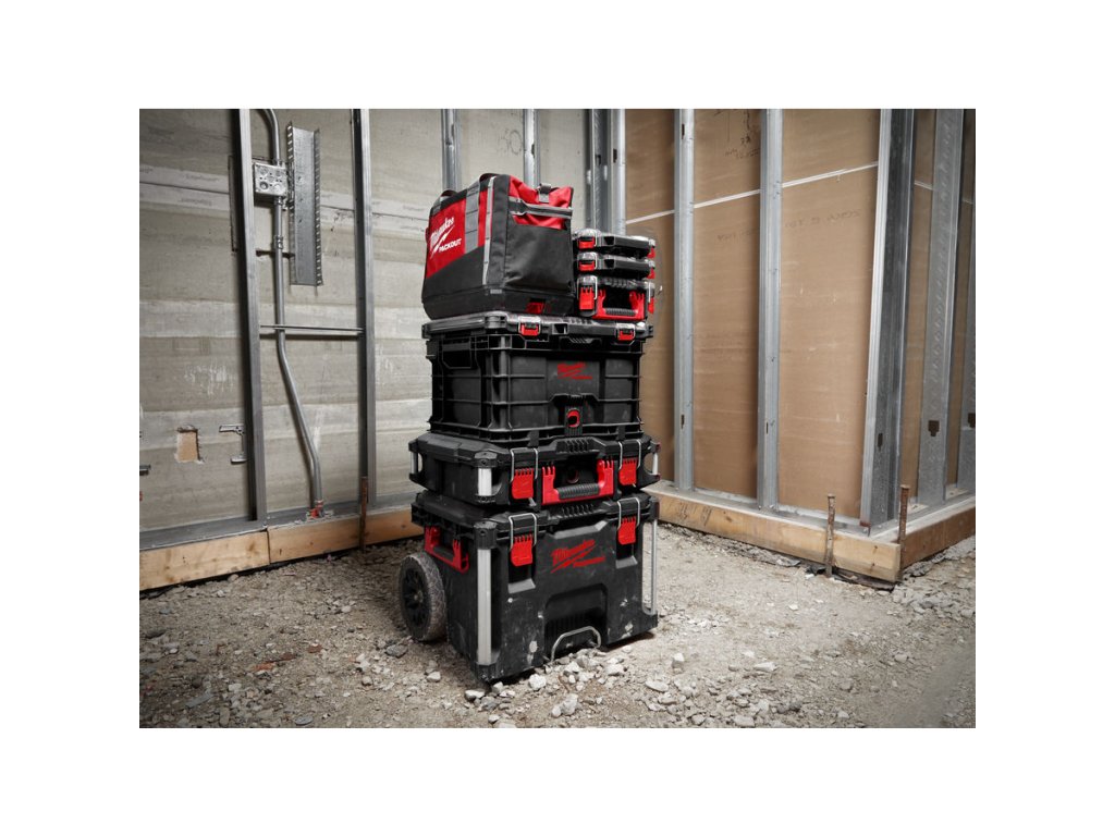 Univerzální Milwaukee Packout přepravka s možnosti stohování: vertikální a horizontální.