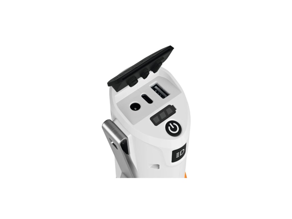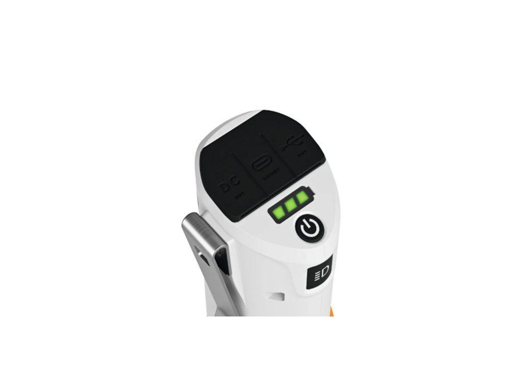 STIHL PS 1 je také skvělým příslušenstvím, které si můžete vzít na cesty při outdoorových aktivitách a kempování. Díky němu můžete nabíjet elektronická zařízení, jako jsou chytré telefony a tablety, napájet reproduktory nebo například provozovat vyhřívané oblečení. Integrovaná svítilna s dvoustupňovým přepínatelným LED světlem nabízí lepší viditelnost za tmy.