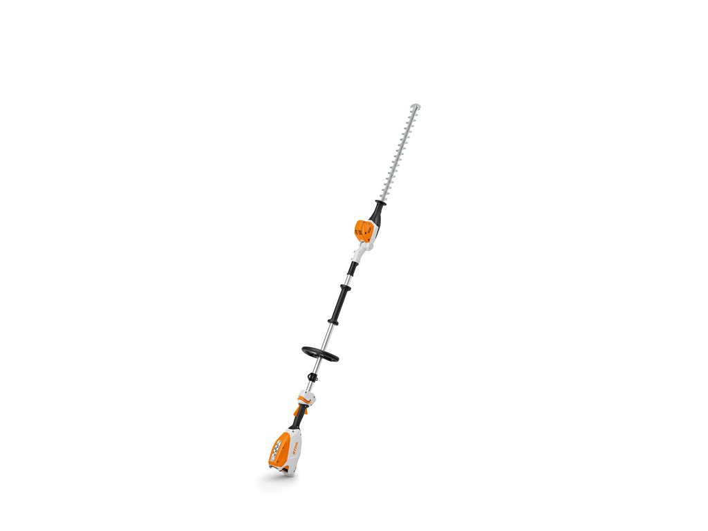 Akumulátorové prodloužené zahradní nůžky na živé ploty. Vhodné pro úpravu velmi vysokých a širokých živých plotů, a to zejména v místech citlivých na hluk (jako jsou např. hřbitovy, okolí škol a úřadů, klidové obytné zóny) bez možnosti připojení na elektrickou přípojku. Vynikající ergonomie, konstantní otáčky i ve větším zatížení. Snadný transport i v osobním voze. Ideálně nastavitelné pro vertikální střih i střih nad hlavou, za překážkami a podobně.