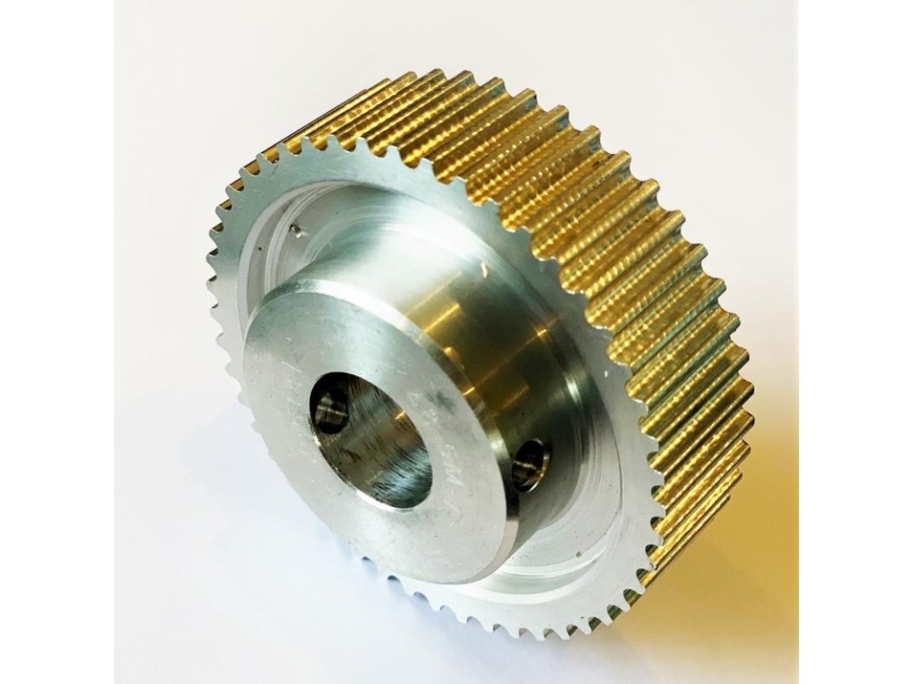 Ozubená řemenice přenášející hnací sílu z dvojřemenice pohonu na vřeteno či regenerační kazetu sekačky Swardman Electra.